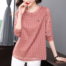 雪纺衫打底衫2022春秋新品宽松大码女装洋气妈妈装长袖T恤女上衣