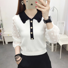 修身性感灯笼袖蕾丝拼接长袖t恤女新半高领百搭上衣雪纺袖打底衫