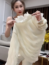 褶皱雪纺衫女蕾丝打底衫秋2022新款洋气内搭小衫网红长袖T恤上衣