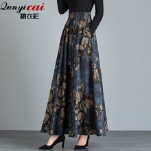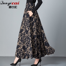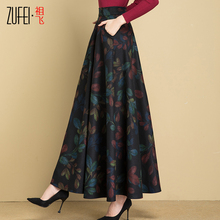 秋冬百搭垂坠大码高腰显瘦毛呢半身裙女长裙碎花中长款a字大摆裙