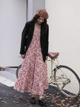 猫娘志法式连衣裙2022早秋新款收腰大摆裙小众度假风无袖碎花长裙