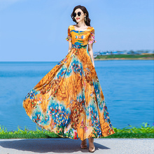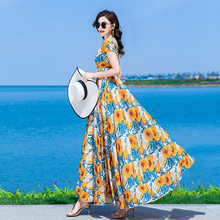 碎花连衣裙女夏季新款2022长款显瘦收腰大摆裙雪纺长裙海边度假