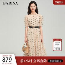 芭蒂娜碎花连衣裙轻奢夏季新款高端品牌气质收腰显瘦大摆中长裙女