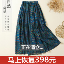 2022秋季新款棉麻半身裙长裙女高腰大摆复古碎花亚麻长裙大码裙子