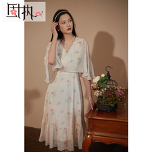 妖精的口袋法式雪纺碎花连衣裙女2022秋新款长袖v领显瘦内搭裙子