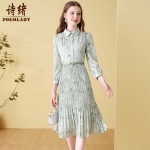 杨杨yangruoyu复古风v领雪纺碎花裙女春秋2022新款百搭打底连衣裙