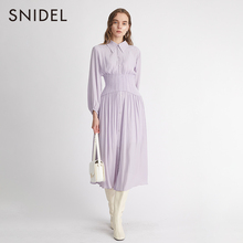 SNIDEL2022春夏新品优雅针织拼接收腰衬衫领雪纺连衣裙SWFO221202