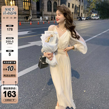 AMI NANA◆秋冬新款法式宫廷风气质连衣裙V领雪纺内搭显瘦仙女裙