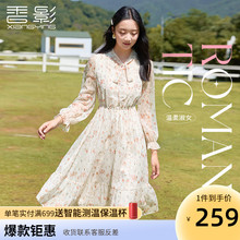 曼娅奴雪纺连衣裙女2022秋季新款气质碎花长袖收腰显瘦茶歇裙短裙