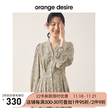 orange desire长袖豹纹连衣裙女2022秋季新款V领显瘦雪纺裙子法式