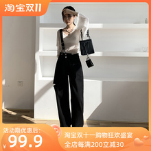 糖系列●减龄宽松破洞百搭背带牛仔裤秋季2022新款专柜撤柜女装