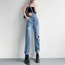 破洞牛仔背带裤女春夏薄款韩版宽松洋气减龄小个子显瘦网红连体裤