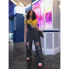 个性欧货破洞乞丐裤补丁牛仔背带裤女连体薄款秋季洋气直筒阔腿潮