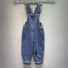 时尚休闲卡通印花破洞牛仔背带裤2022春夏大码宽松减龄垮裤连体裤