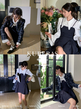 瞌睡兔《秋物语》撞色不规则上衣假两件连衣裙学院甜美长袖百褶裙