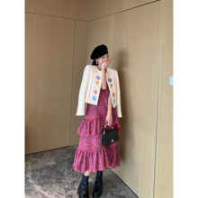 日常温柔汉元素改良国风吊带连衣裙秋冬超仙雪纺新中式不规则裙子