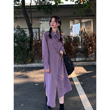 诗绪优雅紫色不规则领长袖连衣裙女秋季2022新款设计感收腰60437