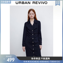 UR2022冬季新款女装轻熟风不规则纽扣捏褶紧身连衣裙WG43SBGN2001