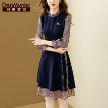 艾诺丝雅诗2022冬新款网纱拼接不规则针织连衣裙秋冬女11119837