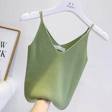 弥古白色针织吊带小背心女西装内搭打底衫短款黑色v领上衣外穿夏