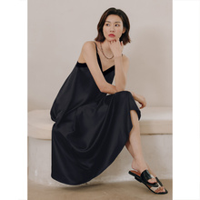 2022新款小黑裙赫本黑色裙子吊带长裙V领性感修身开叉连衣裙女夏