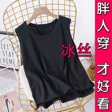 针织真丝背心女 夏季薄款大码无袖衫T恤黑色打底上衣外穿百搭宽肩