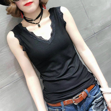 气质吊带背心女欧美性感蕾丝边V领螺纹棉内搭无袖T恤打底衫夏外穿