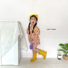 6折现货SS22 BUHO夏季儿童女宝宝有机棉碎花公主短袖上衣短裙套装