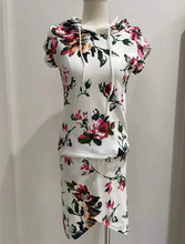 改良旗袍短袖连衣裙女装夏季新中式性感碎花镂空开叉短裙子两件套