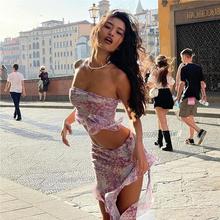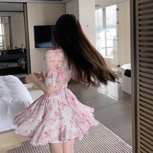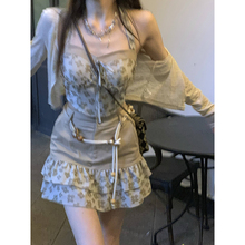鬼马少女碎花连衣裙女2022夏季新款复古修身显瘦性感吊带短裙套装