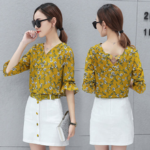 时尚套装女夏装新款韩版修身七分袖雪纺碎花短袖衬衫短裙两件套潮