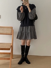 早秋季小个子显高雪纺碎花连衣裙子女配马甲毛衣内搭短裙两件套装