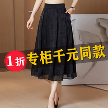 高端醋酸缎面半身裙女夏季中长款a字黑色半裙妈妈显瘦真丝伞裙子