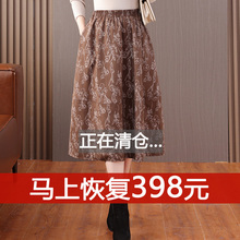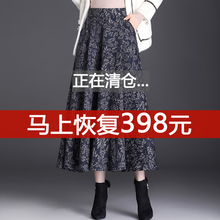 毛呢半身裙女春秋冬季加厚中长款a字高端伞裙妈妈大摆碎花半裙子