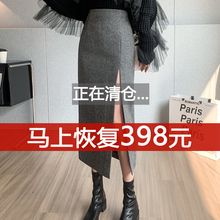 加厚毛呢半身裙女秋冬季羊毛双面呢中长款直筒包臀羊绒一步半裙子