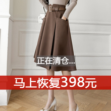 毛呢半身裙女秋冬季中长款a字高腰大摆伞裙巨显瘦遮胯半裙子大码