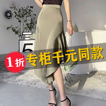 不规则半裙设计感女夏季中长款高腰垂感真丝包臀裙荷叶边半身裙子