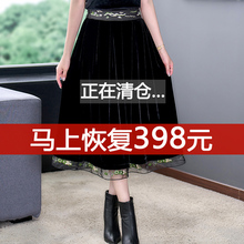 黑色金丝绒加厚半身长裙女秋冬季新款有内衬裙子大摆高腰a字伞裙