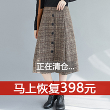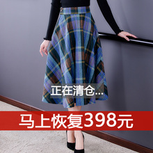 毛呢格纹半身裙女秋冬季中长款a字高腰伞裙大码巨显瘦半裙子遮肚