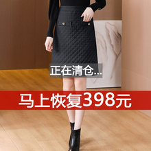 羽绒半身裙女2022秋冬天加厚妈妈中长款a字包臀碎花香云纱半裙子