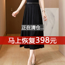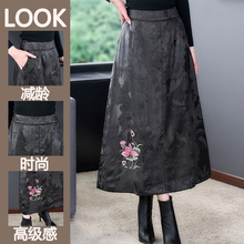 香云纱刺绣国风半裙女春秋妈妈碎花长裙夏季高腰垂感真丝半身裙子