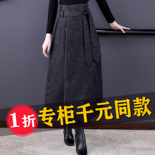 一片式半身长裙女秋冬季新款加厚夹棉冬天直筒a字黑色包臀半裙子