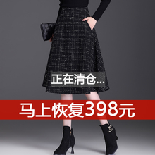 小香风毛呢格子半身裙女秋冬季加厚中长款伞裙高腰a字呢子半裙子