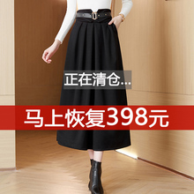 高腰毛呢半身裙女士秋冬季a字遮胯中长款百褶伞裙加厚呢子半裙子