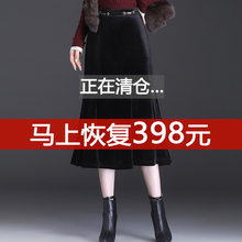 金丝绒半裙女秋冬黑色包臀半身裙中长款a字显瘦高腰法式鱼尾裙子