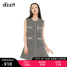 dzzit地素 2022夏季新款时髦圆领小香风粗花呢无袖荷叶边连衣裙