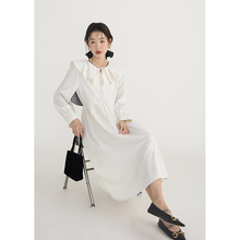 CHACHA法式复古白色长袖连衣裙女荷叶领收腰显瘦秋季2022新款长裙