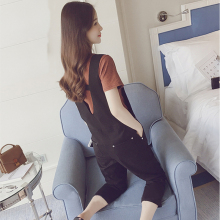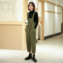 新款韩版阔腿连体裤裙bf休闲九分裤宽松大码学生背带裤时尚吊带裤