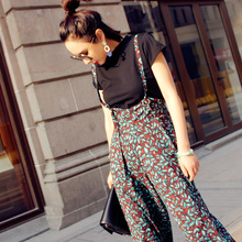 吊带阔腿裤女收腰连体雪纺背带裤宽松高腰碎花九分裤春夏2022新款