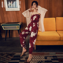 性感露背抹胸韩版九分裤雪纺吊带连体裤女夏2022新款高腰阔腿显瘦